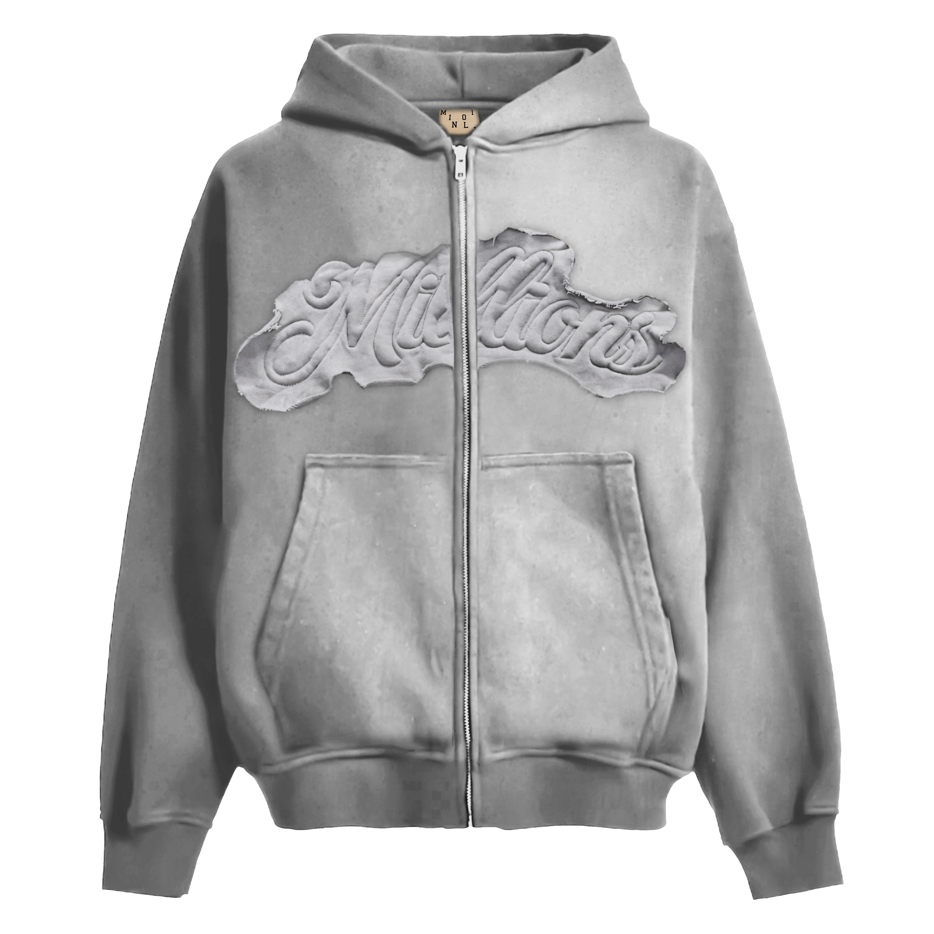 *RARE* MILLIONS DISTRESSED ZIP - UP HOODIE